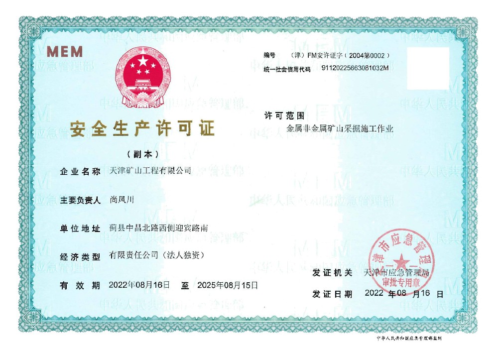 天津礦山工程有限公司(以下簡稱公司)始建于1965年,隸屬中國建材集團有限公司,是從事礦山總承包、礦山開采運營、礦山設計與咨詢、土石方爆破、生態恢復治理、鋼結構制作安裝、機電設備安裝以及工程測量的專業化礦山施工企業和礦山開采運營總承包服務商。具備礦山總承包和爆破雙一級資質。 公司始建于1965年,總部位于天津市···
